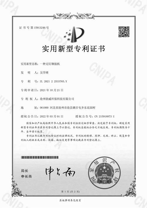 • 無釘鉚接機專利